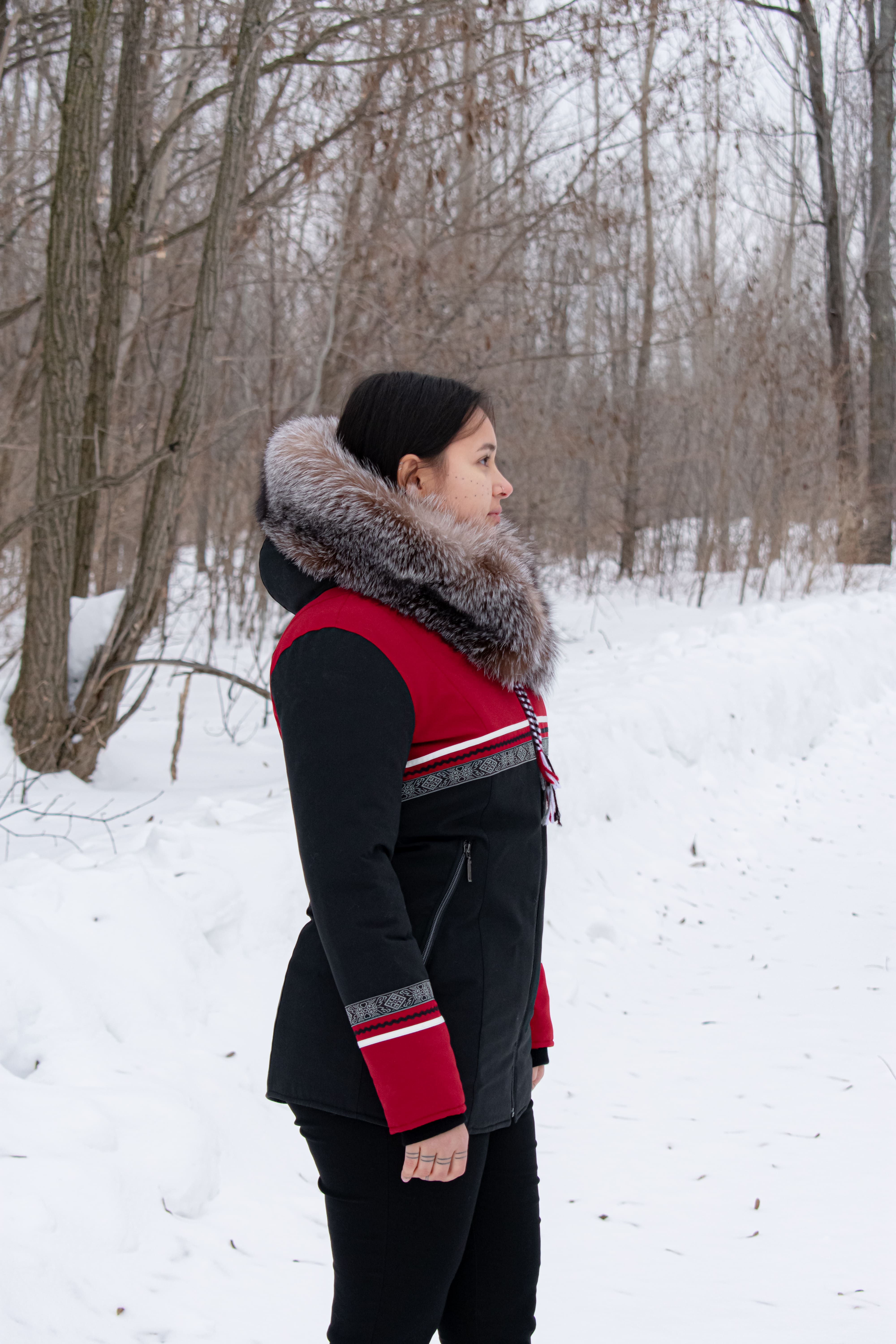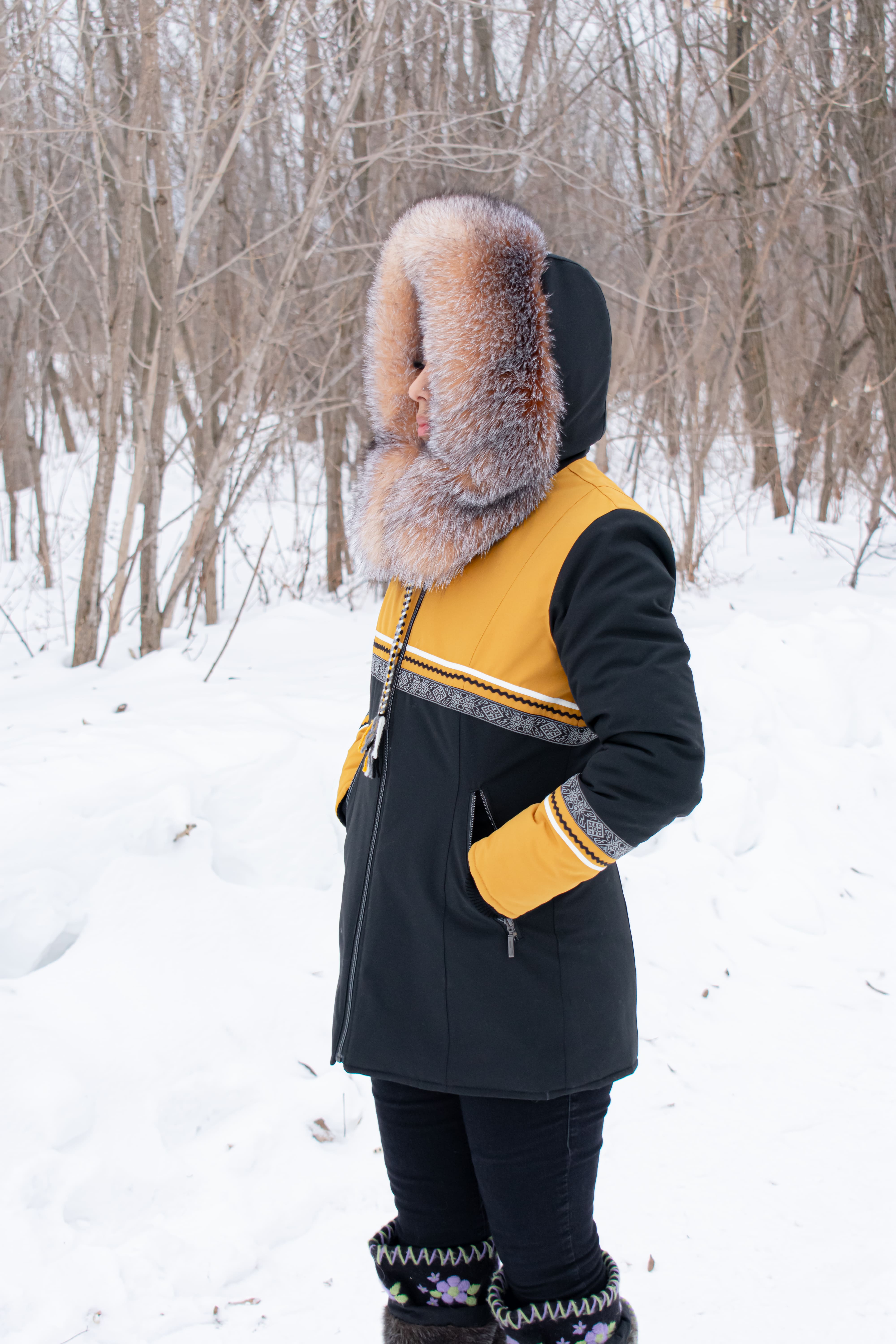 Women Parka with 2 color combination and zippered pockets Bias tape and ric rac trim and braid trim